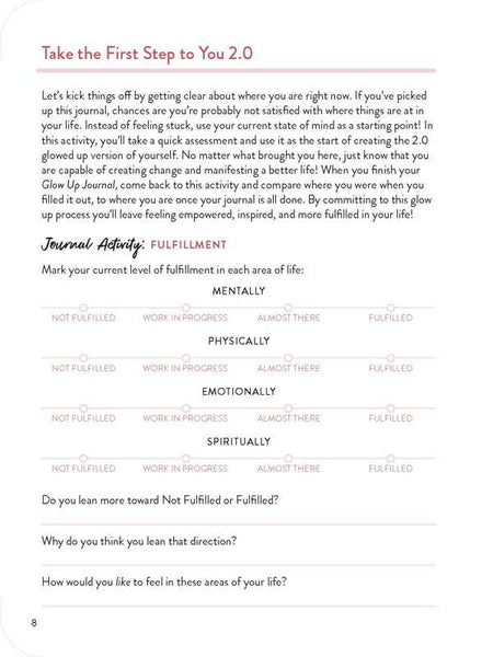 A glow up is a transformation—transforming from where you currently are to the ultimate version of yourself. In The Glow Up Journal, you’ll spend more time determining who this dream self is as you create a personalized bullet journal for your glow up journey and all your glow up goals.